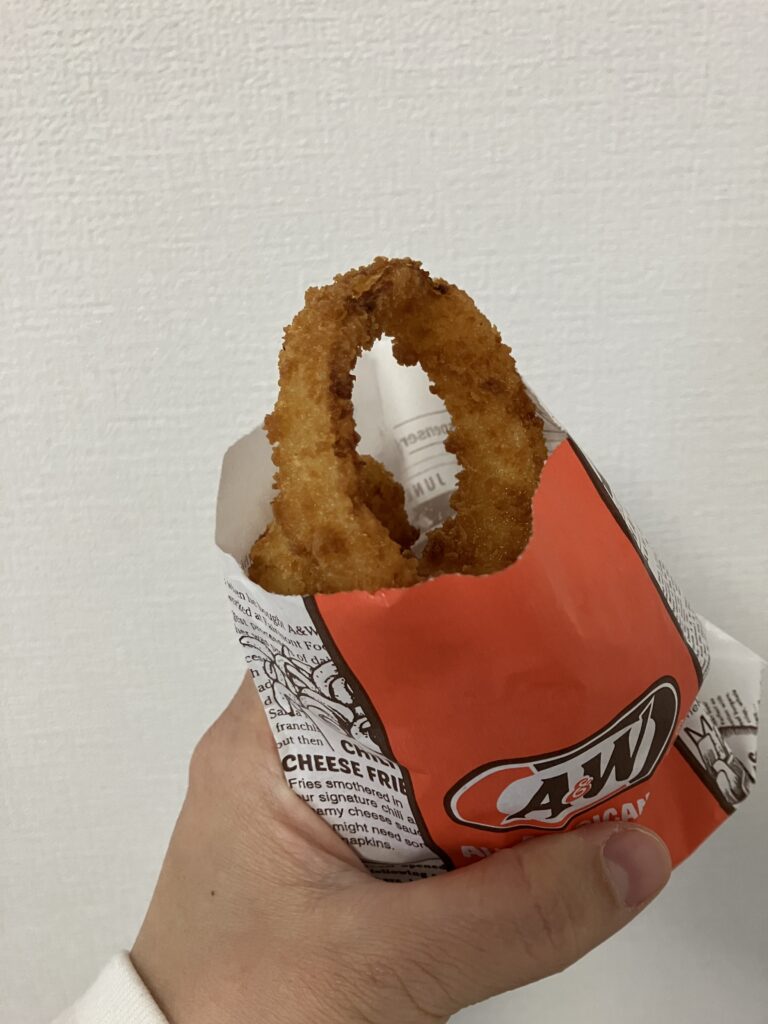 もともとオニオンリング好きなのですが、A&Wのオニオンフライはその中でも群を抜いています。