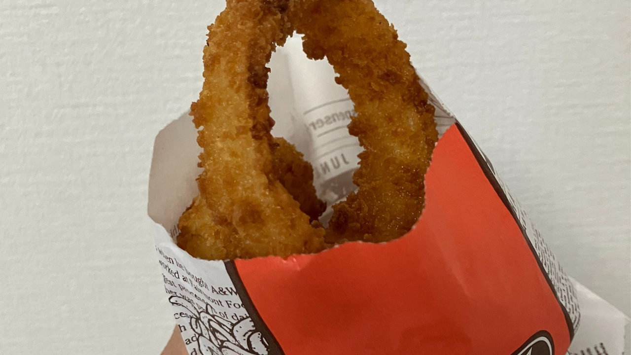 もともとオニオンリング好きなのですが、A&Wのオニオンフライはその中でも群を抜いています。